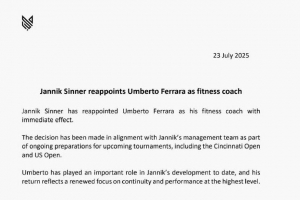 辛納宣布體能師回歸團隊,曾將含有違禁品的噴霧劑帶到美國