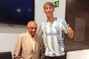 回家!赫伊森造訪青訓(xùn)母隊(duì)馬拉加,身穿馬拉加球衣拍照