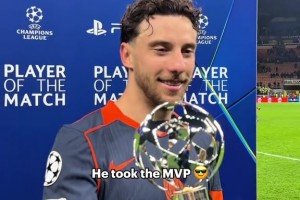 拼命三郎!國米大將奧古斯托領(lǐng)取歐冠單場MVP獎杯