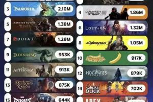 體育資訊10月01日訊 據(jù)外媒公布的數(shù)據(jù)顯示,目前Steam平臺所有游戲同時(shí)在線人數(shù)榜單情況如下。