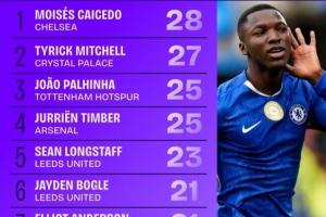 體育資訊10月7日訊 Squawka統(tǒng)計(jì)了本賽季英超搶斷榜前十,切爾西中場(chǎng)凱塞多28次位居第一,阿森納后衛(wèi)廷伯25次第四。