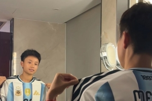球王的小迷妹張琳艷社媒曬照,上身最新款阿根廷梅西10號(hào)球衣
