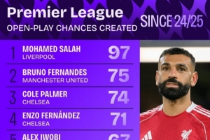 體育資訊10月16日訊 日前,Squawka統(tǒng)計了英超運動戰(zhàn)創(chuàng)造機會次數(shù)排行。