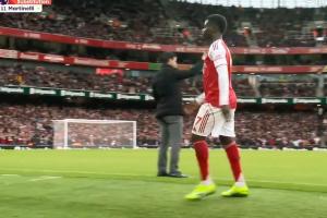 第65分鐘,馬丁內(nèi)利替補(bǔ)登場換下薩卡。