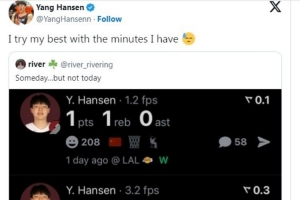 某網(wǎng)友在社媒發(fā)文表示賽季至今的5場(chǎng)比賽小楊得分依次是2分、2分、2分、1分、2分,并配文寫道:“我知道他會(huì)打出來(lái),但不是現(xiàn)在!”。假冒楊瀚森賬號(hào)則在社媒上回復(fù)道:“我會(huì)在能獲得的時(shí)間里用盡全力。”這一回復(fù)被“Sporting News”的編輯誤以為是楊瀚森本尊于是他們撰寫了新聞并發(fā)出(如下所示)。