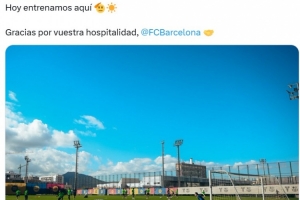 體育資訊11月3日訊 西甲埃爾切官推曬出一張球隊(duì)借用巴薩訓(xùn)練基地訓(xùn)練的照片,配文寫道:“今天我們?cè)谶@里訓(xùn)練,感謝巴薩俱樂部的慷慨??”