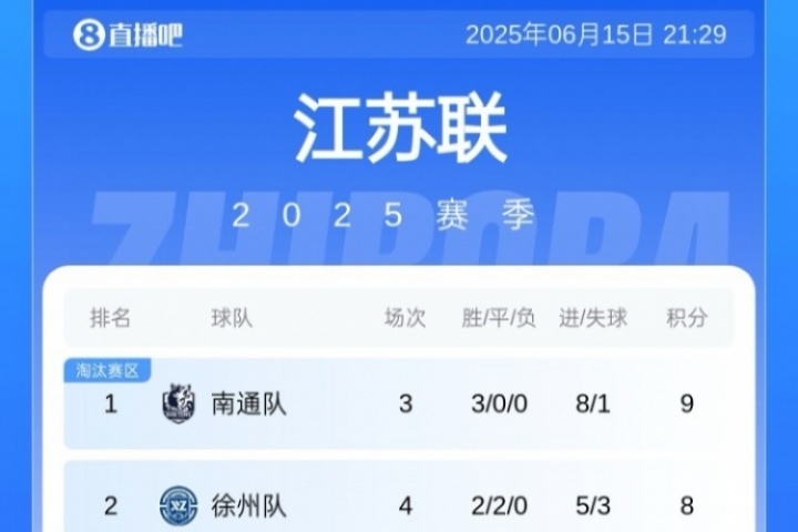 體育資訊06月15日訊 蘇超第四輪今日結(jié)束三場比賽,常州0-2不敵無錫,遭遇四連敗,徐州1-0戰(zhàn)勝鎮(zhèn)江、連云港1-1戰(zhàn)平蘇州。最新積分榜如圖。