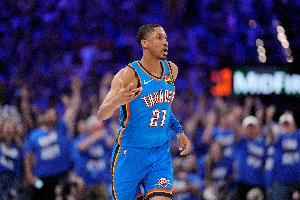 體育資訊6月17日訊 NBA總決賽G5,雷霆半場(chǎng)59-45領(lǐng)先步行者。