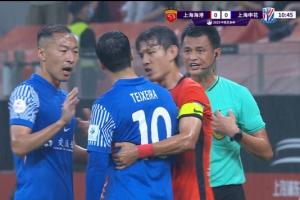體育資訊06月22日訊 足協(xié)杯1/8決賽,上海海港vs上海申花。比賽第10分鐘,特謝拉被茹薩踢倒后非常不滿,朝裁判不斷抱怨,申花隊長吳曦和海港隊長王燊超都跑來勸他。