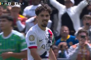 體育資訊06月24日訊 世俱杯巴黎vs西雅圖海灣人第35分鐘,維蒂尼亞禁區(qū)外插上勁射,皮球擊中K77后變線入網(wǎng)。此時(shí)比分變?yōu)榘屠?-0領(lǐng)先。這球判定為K77的進(jìn)球。