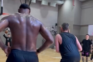 體育資訊6月24日訊 今日,著名訓(xùn)練師Chris Brickley更新推特,曬出一段他輔助詹姆斯和樂福一同在紐約訓(xùn)練的視頻。