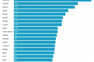 體育資訊6月25日訊 外媒統(tǒng)計MSI歷史英雄出場次數(shù)TOP20: