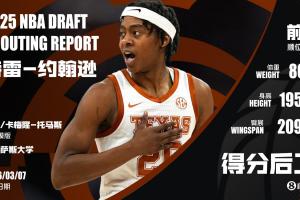 2024-25賽季,特雷-約翰遜為德克薩斯大學(xué)出戰(zhàn)33場比賽,場均登場34.7分鐘可以拿下19.9分3.1籃板2.7助攻0.9搶斷0.3蓋帽1.8失誤,投籃命中率是42.7%,三分命中率為39.7%,罰球命中率是87.1%。