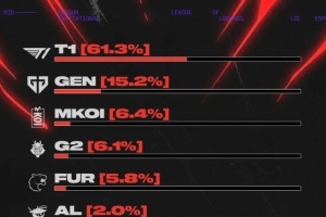 體育資訊6月27日訊?LOL官推分享了國(guó)外軟件WhatsApp上網(wǎng)友對(duì)MSI冠軍的預(yù)測(cè)結(jié)果。其中61.3%的網(wǎng)友認(rèn)為T(mén)1會(huì)拿到MSI冠軍,認(rèn)為GEN會(huì)奪冠的則占到15.2%。而支持AL和BLG奪冠的分別只有2%和1.2%,只排在第六和第七。