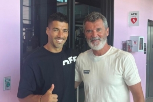羅伊-基恩造訪(fǎng)邁阿密?chē)?guó)際,俱樂(lè)部官方社媒曬出他與阿爾巴、布斯克茨、蘇亞雷斯的合照。