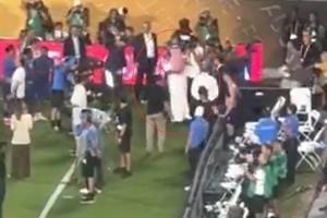 賽后,看臺上利雅得新月主席法赫德-本-納費爾來到場邊,逐一擁抱了新月的球員。
