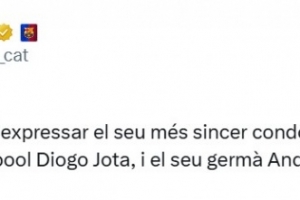 巴薩官推寫道:“巴塞羅那足球俱樂部對利物浦球員若塔及其兄弟安德烈的去世表示深切哀悼,愿他們安息。”