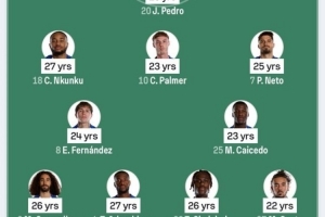 數(shù)據(jù)統(tǒng)計(jì)顯示,切爾西首發(fā)平均年齡僅24.8歲,僅3人超過(guò)26歲(均為27歲);而弗魯米嫩塞首發(fā)平均年齡高達(dá)31.0歲,僅有2人低于26歲。
