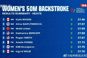 世錦賽女子50米仰泳預賽:萬樂天第三晉級半決賽,魯星辰遭遇淘汰