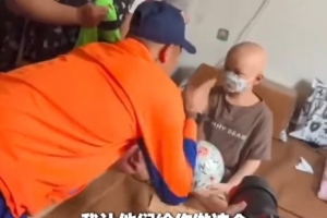 韓鵬代表球隊送給了這名小球迷全隊的簽名足球,并祝福這名小球迷早日康復。