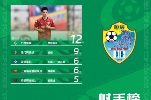 體育資訊6月2日訊 中乙聯(lián)賽第12輪比賽過(guò)后,由申花外租廣西恒宸的費(fèi)爾南多以12球繼續(xù)領(lǐng)跑射手榜。