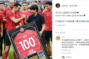周定洋在社媒曬出徐正源為他頒發(fā)百場紀念球衣時的合影,他配文寫道:“偉大的人造就偉大的領(lǐng)袖??”