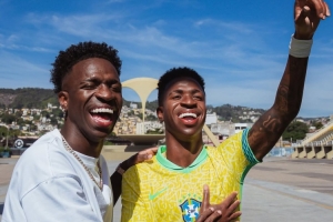 體育資訊7月18日訊 巴西球星維尼修斯更新社交媒體動(dòng)態(tài),他曬出與自己蠟像的合影。