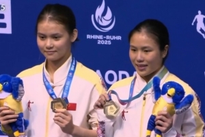 在女子雙人十米臺(tái)比賽中,何妍偉/盧為成功奪冠,德國(guó)選手和美國(guó)選手分別獲得第二和第三,這枚金牌是中國(guó)代表團(tuán)在本屆大運(yùn)會(huì)上的首枚金牌。