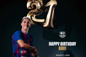 體育資訊8月5日訊 今天是巴薩中場加維的21歲生日,巴薩官方為他送上祝福。