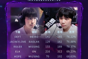 體育資訊8月6日訊 BLG對陣JDG賽前,官方發(fā)布了LPL歷史下路雙人組勝率榜: