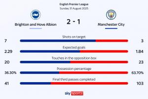 體育資訊08月31日訊 英超第3輪,曼城1-2遭布萊頓逆轉(zhuǎn),藍(lán)月亮新賽季開(kāi)賽3輪1勝2負(fù)僅積3分。