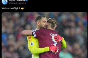 哈蘭德也通過社媒曬出了他與多納魯馬相擁的合照,并熱情歡迎這位強(qiáng)力新援:“歡迎,吉吉奧(吉安路易吉的昵稱)!”