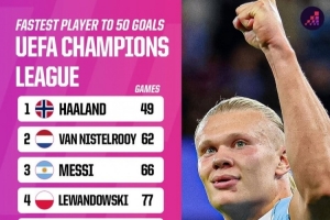 體育資訊9月19日訊 歐冠聯(lián)賽階段第1輪,曼城主場2比0擊敗那不勒斯。其中哈蘭德打進1球,這也是他個人歐冠50球,僅49場即達成此成就。