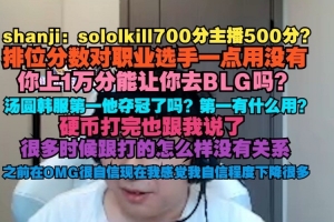 shanji:sololkill700分主播500分?排位分?jǐn)?shù)對職業(yè)選手一點(diǎn)用沒有,你上1萬分能讓你去BLG嗎?湯圓韓服他奪冠了嗎?第一有什么用?