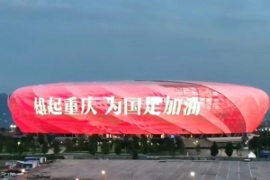 重慶市兩江新區(qū)管委會透露,龍興足球場及周邊區(qū)域現(xiàn)已完成各項籌備工作,全力營造濃厚氛圍,龍興足球場的外立面也打出了“雄起重慶 為國足加油”的巨型字幕,龍興足球場的外立面有46萬顆燈珠,夜幕降臨時整個外立面可以變成8萬平方米的LED顯示屏。