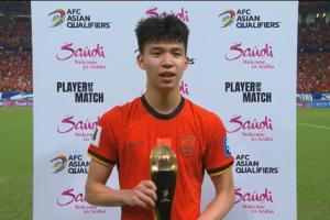 體育資訊06月10日訊 世預賽亞洲區(qū)第三階段C組第10輪,中國男足1-0擊敗巴林。賽后現(xiàn)場廣播宣布,點射打入絕殺球的王鈺棟當選全場最佳球員!