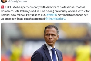 緊隨主帥佩雷拉步伐,奧恩斯坦:狼隊(duì)總監(jiān)多梅尼科-泰蒂離職