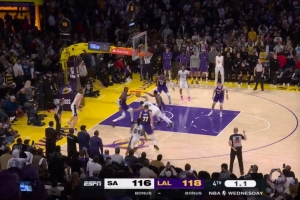 馬刺湖人裁判報告:馬刺最后0.04秒誤獲球權(quán) 球由凱爾登碰出底線